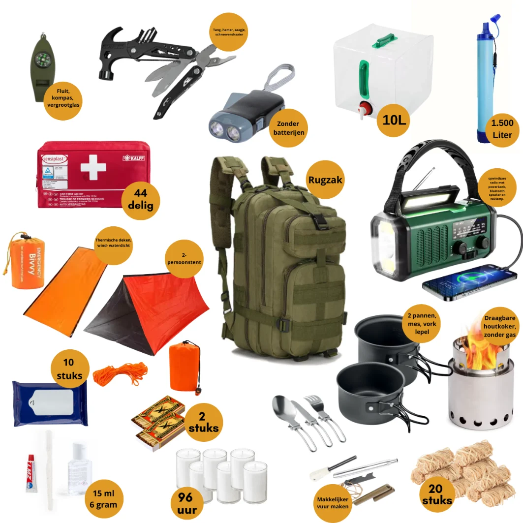 De overheid adviseert dat je minimaal 72 uur zelfstandig moet kunnen overleven bij een noodsituatie. Dit betekent dat je gedurende deze tijd zelfvoorzienend moet zijn, zonder hulp van buitenaf.