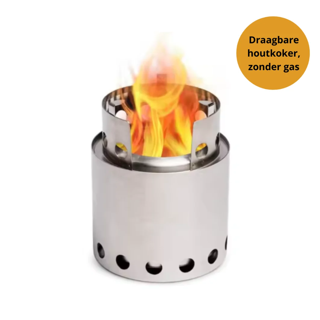 - Vuurstoof: draagbare houtkoker. Koken zonder gas, maar met gebruik van houtjes en takjes.