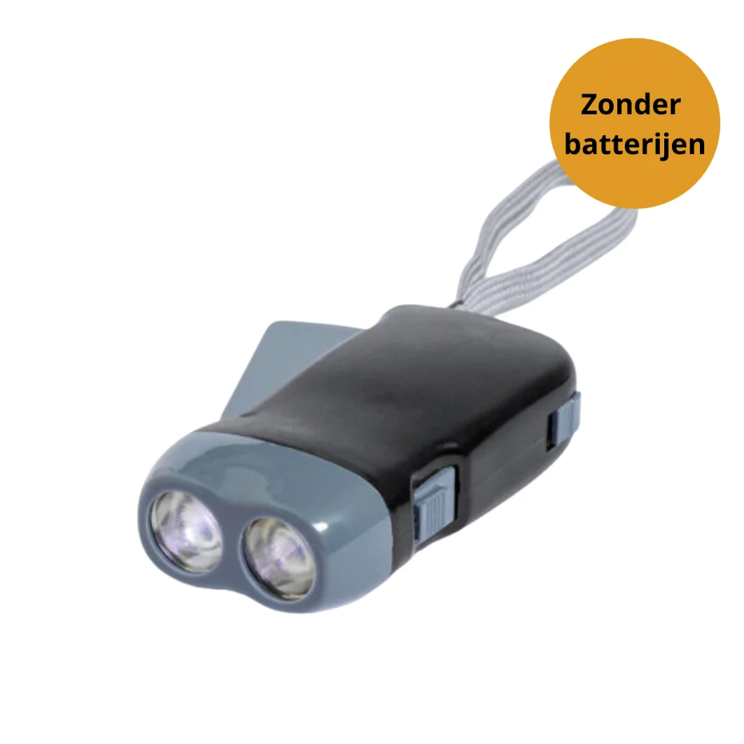 - Zaklamp: knijpkat, werkt zonder batterijen.